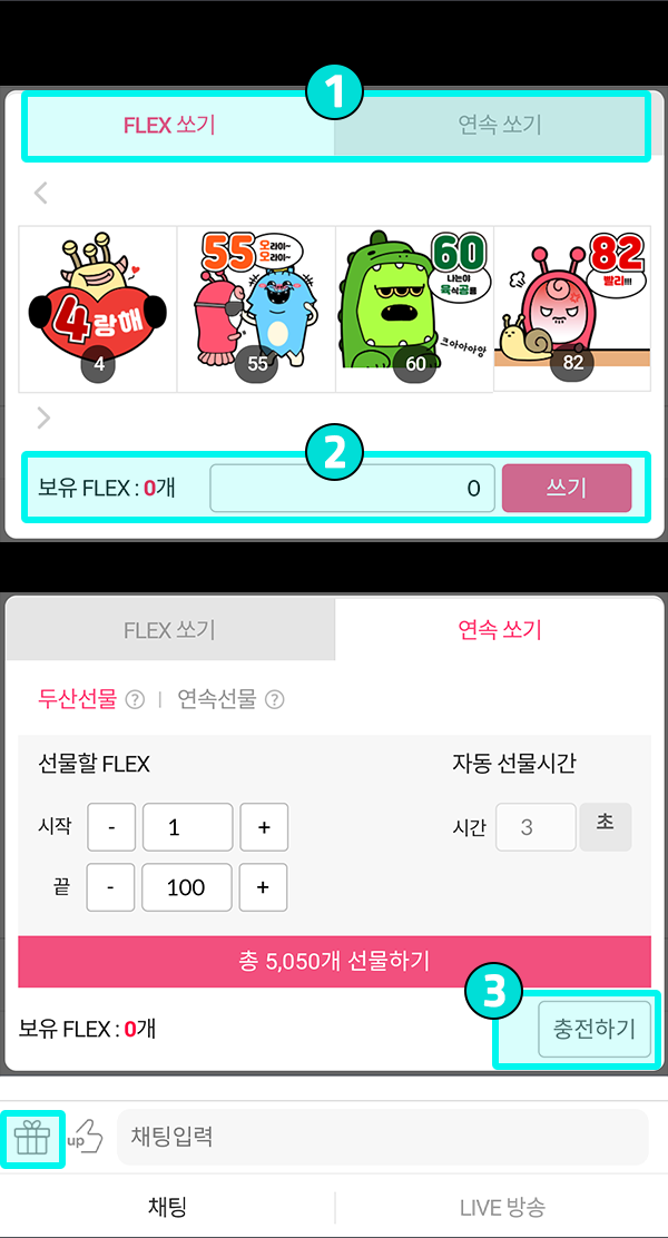 - 전체 라이브방송의 정렬을 설정할 수 있습니다.