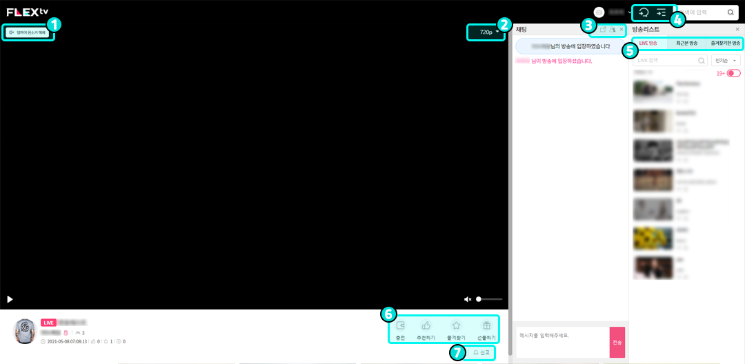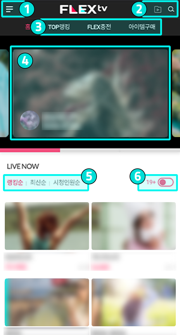 - TOP랭킹, 최근 본 방송 등 원하는 페이지로 이동이 가능합니다.